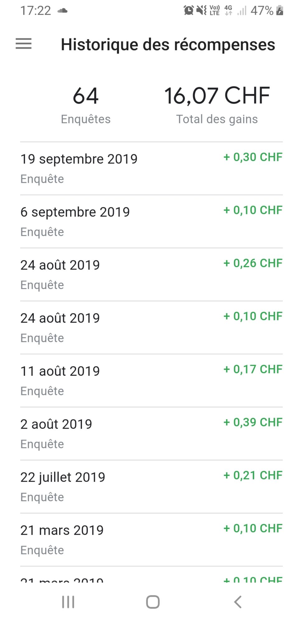 Vous devez d’abord télécharger l’application Google Opinion Rewards. Ensuite vous répondez simplement aux questions de Google et vous gagnerez à chaque fois quelques centimes. Parfois, selon l’endroit où vous irez, vous recevrez des questions plus spécifiques (par exemple je suis allée à Landi et à Aquatis et j’ai reçu juste après des questions à ce sujet). Et l’argent gagné vous pourrez le dépenser sur Google Play ou dans l’App Store, par exemple en téléchargeant des applications qui sont payantes, ou un cd, un ebook, un jeu payant… bref vous avez compris !