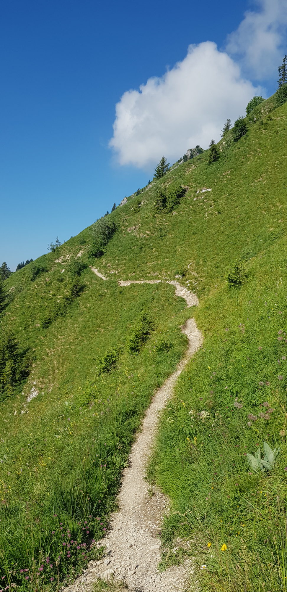 – Si vous avez des enfants, on m’a dit de vous conseiller la partie avec la piste de luge lorsque vous arrivez à la moitié du chemin (Plan Francey à 1520m), car elle est plus large et moins raide, et donc leur conviendra mieux 🙂 (donc du parking à Plan Francey, à mi-chemin avant le sommet)
