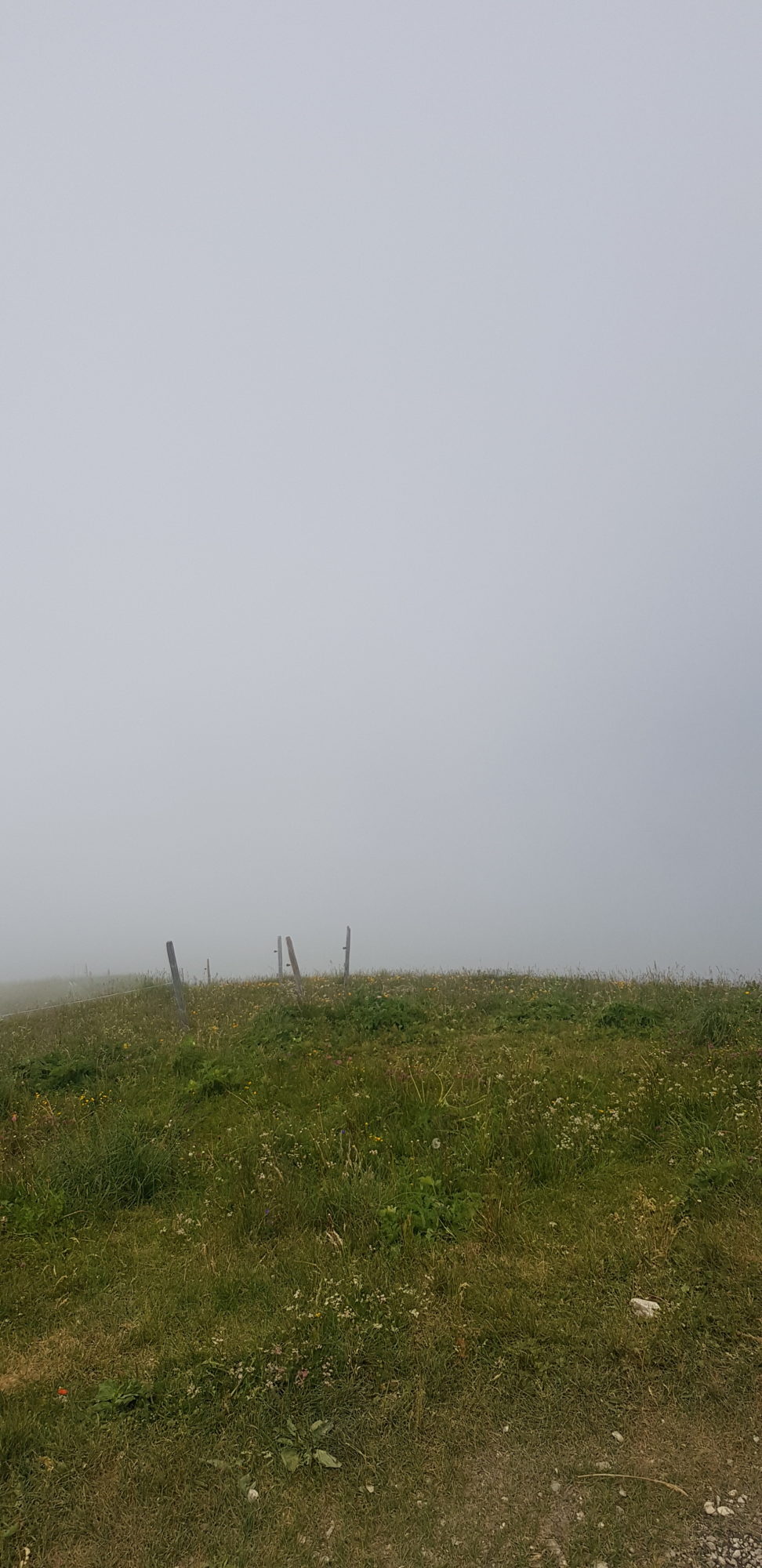 On est presque arrivées au sommet, et là on voit les nuages s’installer… mince, on se dépêche, mais on arrive trop tard. On loupe la vue qui nous attendait, car on voit que des nuages, le brouillard. On est un peu déçues, mais bon, au moins on s’en est pris plein la vue pendant la montée !