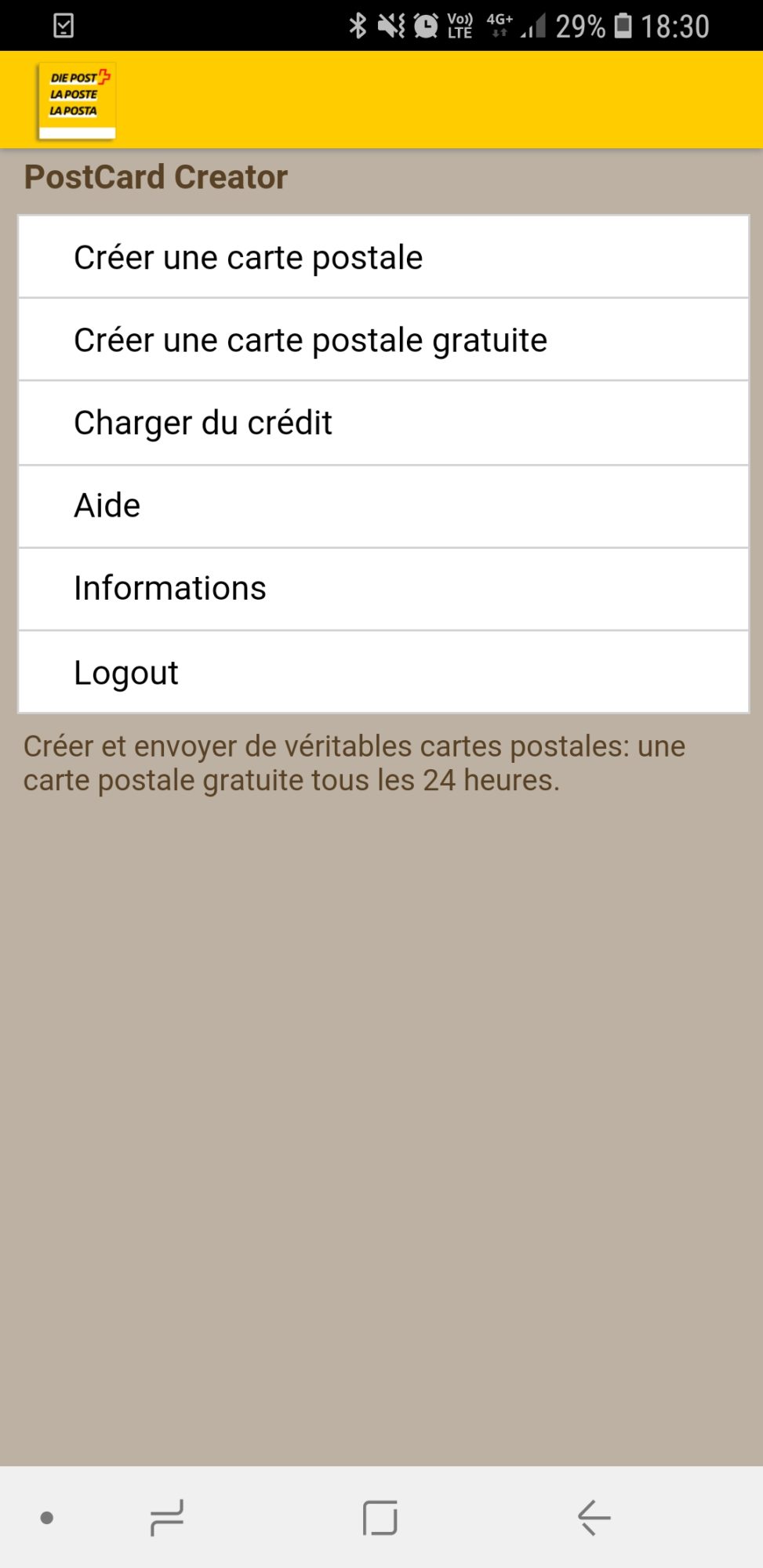Et oui, l’application Postcard je connais mais ça marche plus chez moi, je sais pas pourquoi…