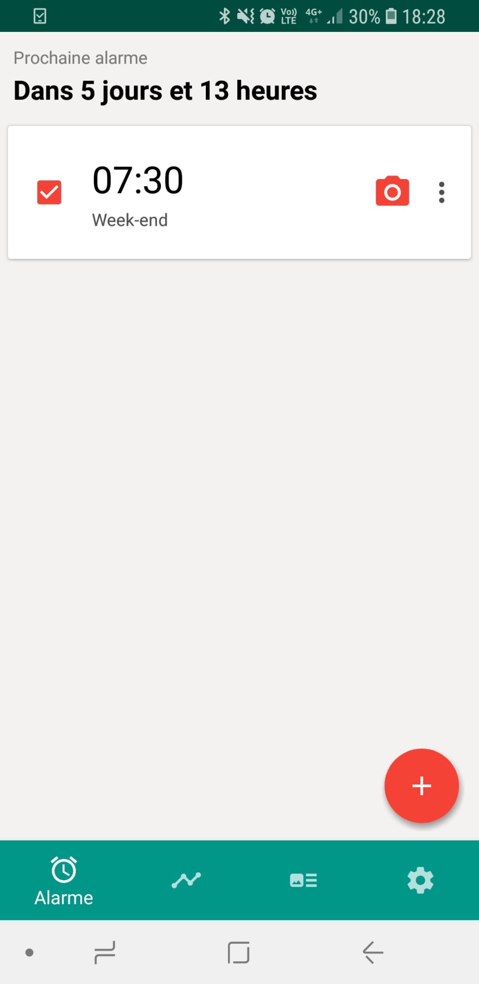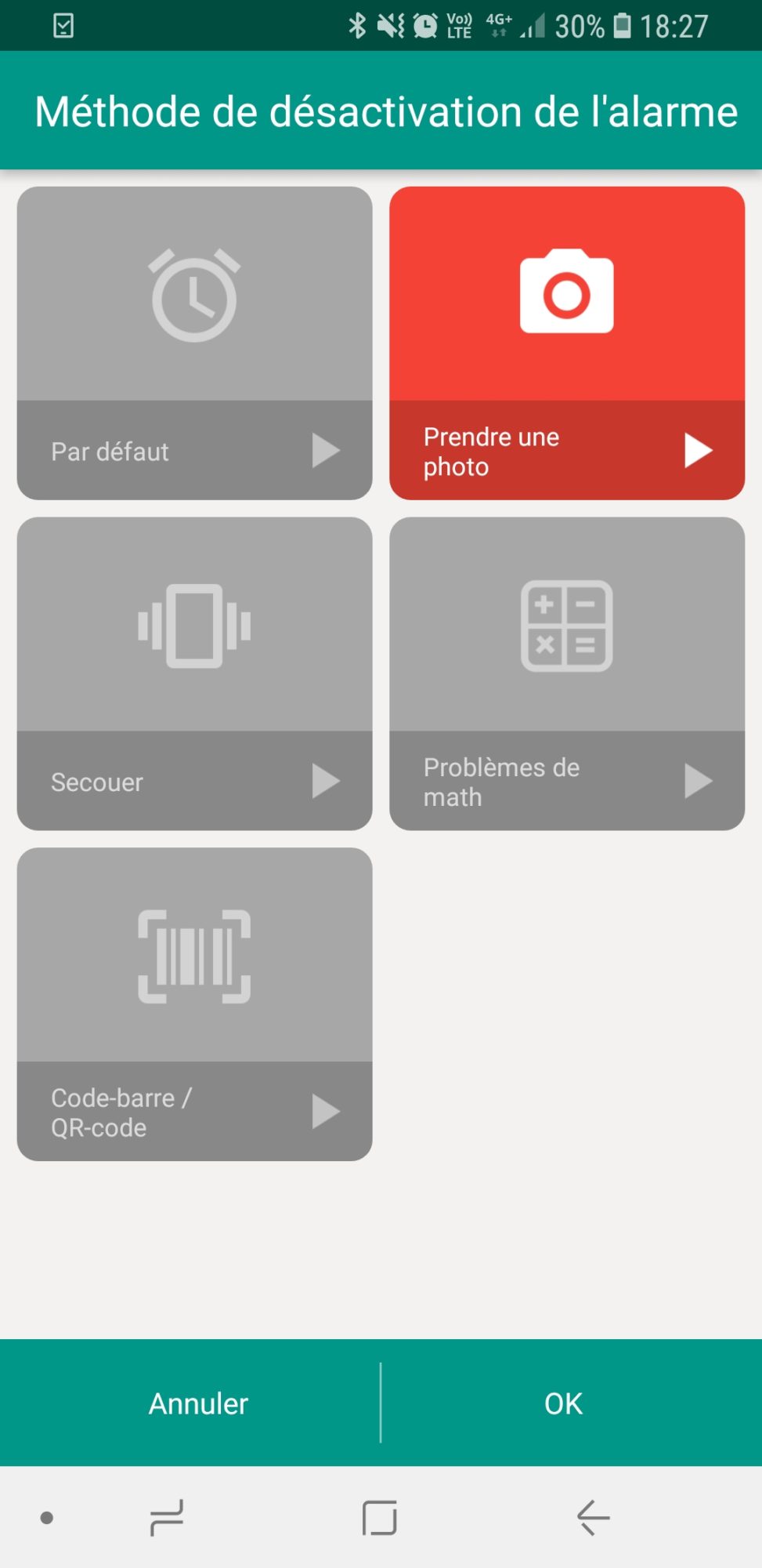 Vous ouvrez l’application, vous choisissez votre heure de réveil. Ensuite vous choisissez comment éteindre votre réveil. Et là plusieurs méthodes existent, mais voici celle que je vous conseille : « prendre une photo ».