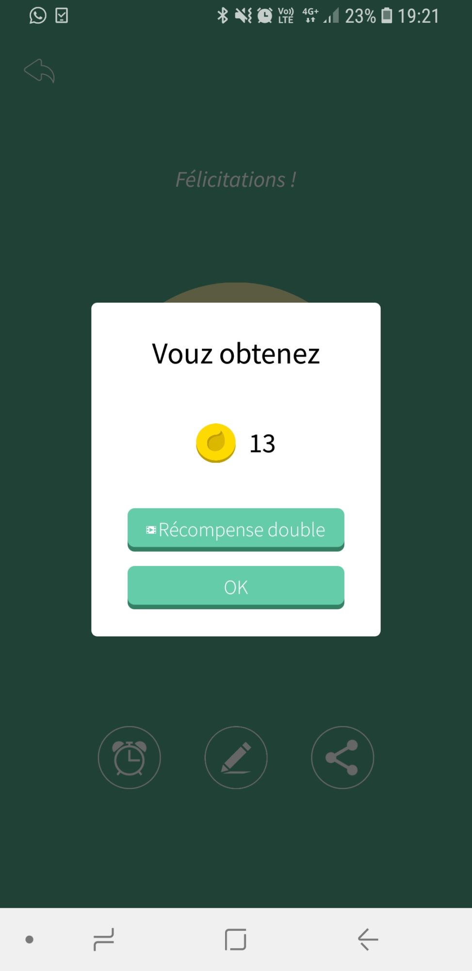 Si vous utilisez votre natel, l’arbre mourra et vous devrez recommencer. Si vous respectez le temps imposé sans utiliser votre téléphone, vous allez pouvoir planter votre arbre dans votre forêt et recevoir des points (ça peut aller de 4 à 18 points je crois).
