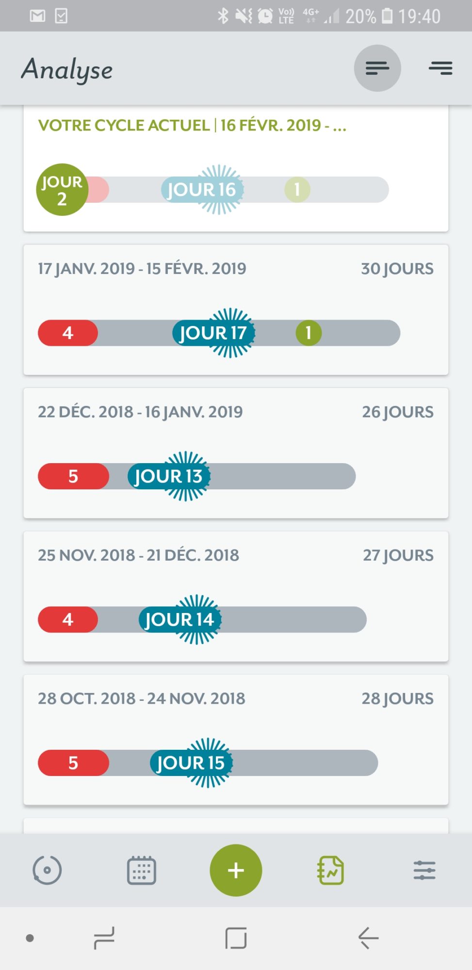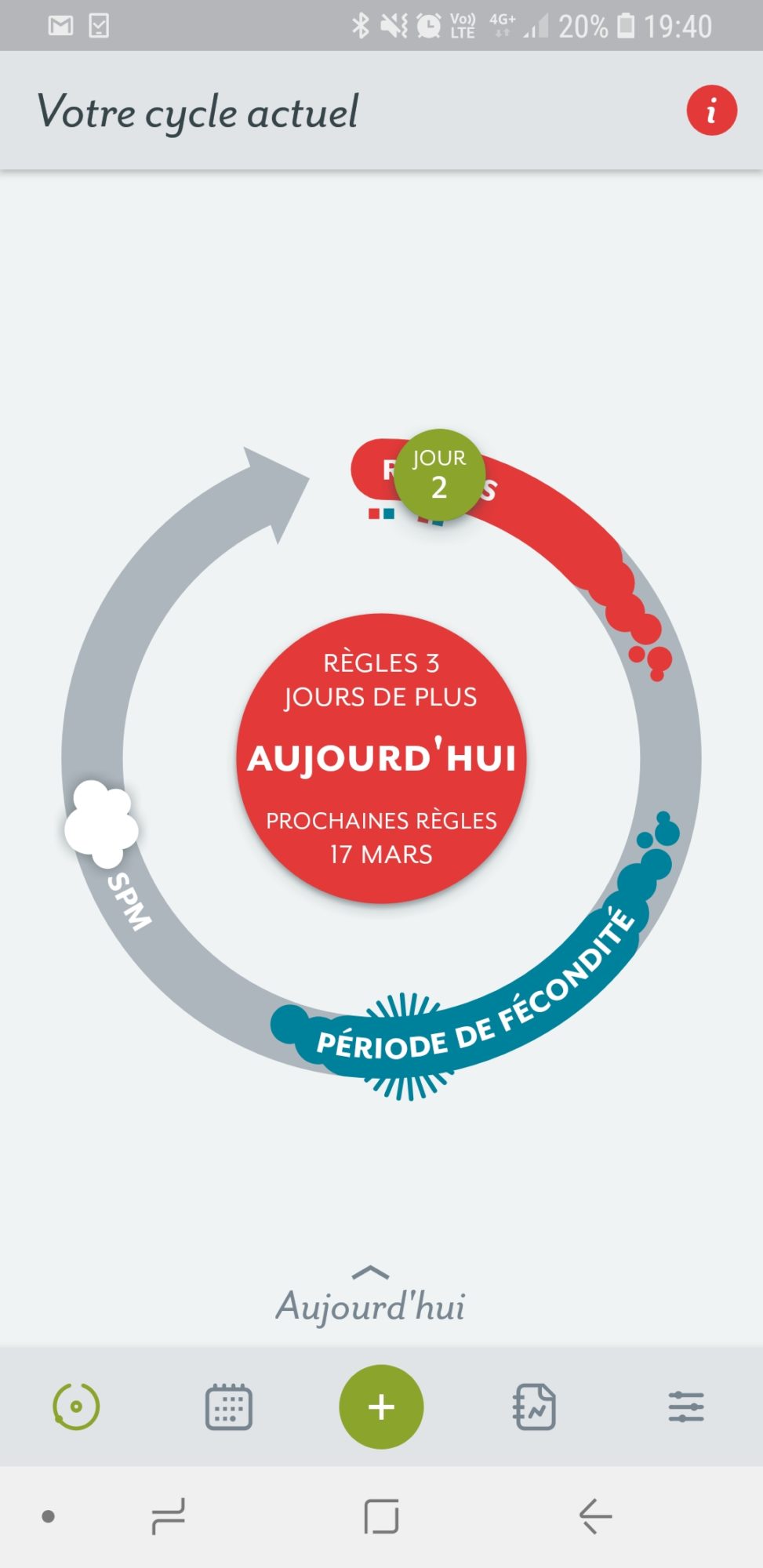 C’est une application qui vous permet de suivre en détails vos règles, votre cycle. Je la trouve bien faite car en un coup d’oeil on a un aperçu de plusieurs données intéressantes et importantes sur notre cycle, comme par exemple la période d’ovulation, la durée des règles en moyenne, la date approximative des prochaines règles, etc.