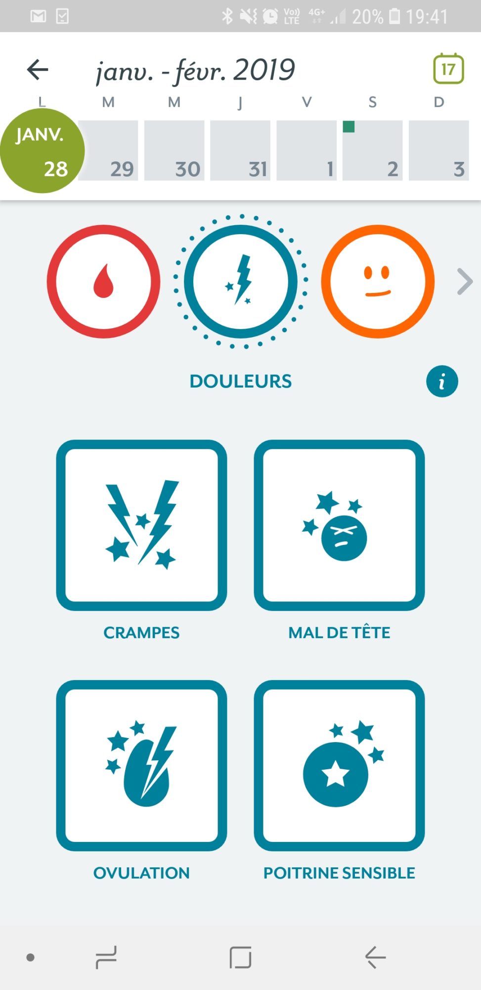 On peut même entrer plusieurs éléments selon la catégorie ! Par exemple on peut insérer les douleurs, le type de pertes et saignements, notre énergie, libido, envies etc.