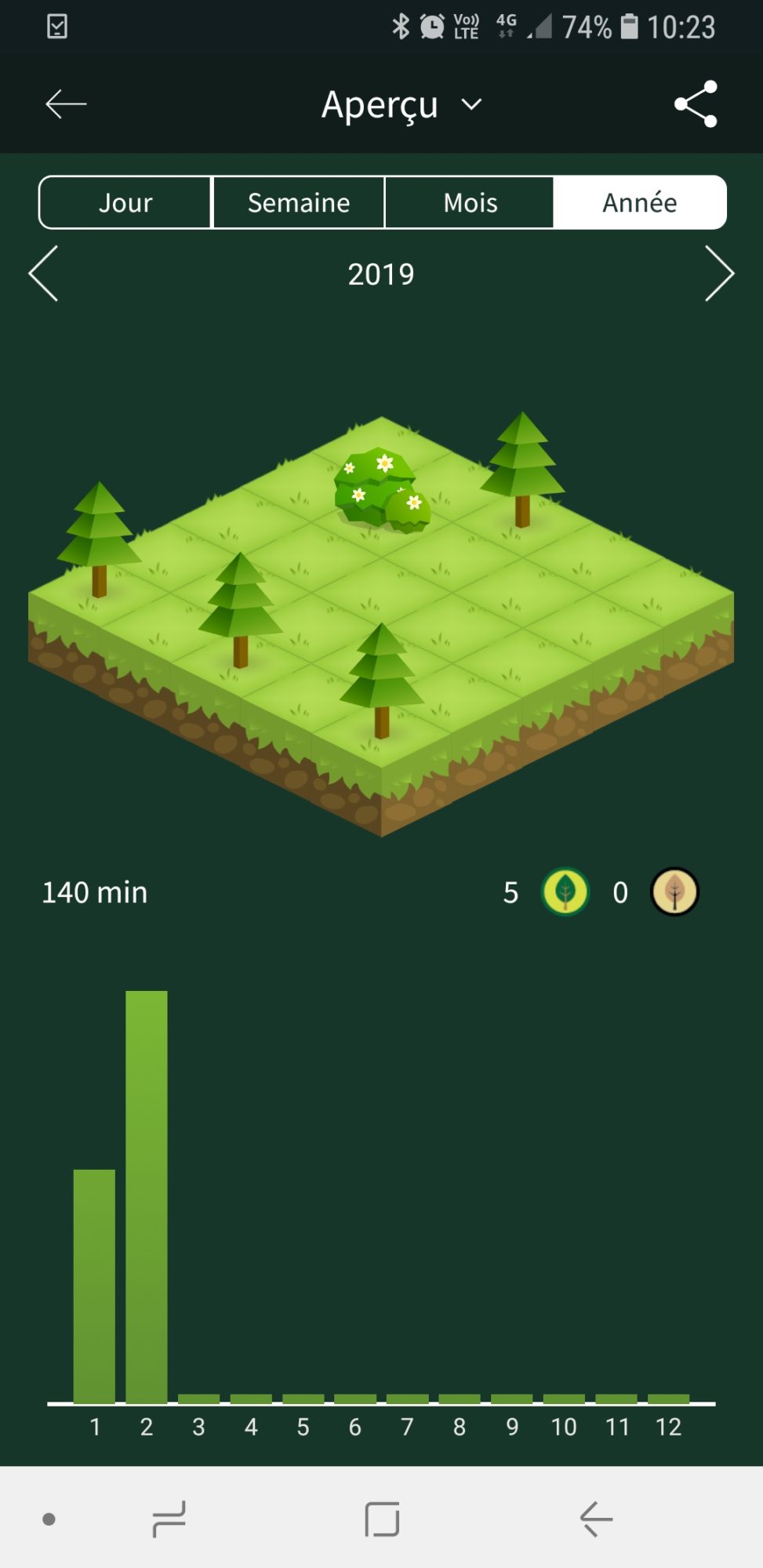 Si vous utilisez la version payante (1.90 CHF), lorsque vous aurez atteint 2500 points, vous pourrez alors planter un vrai arbre via l’application !