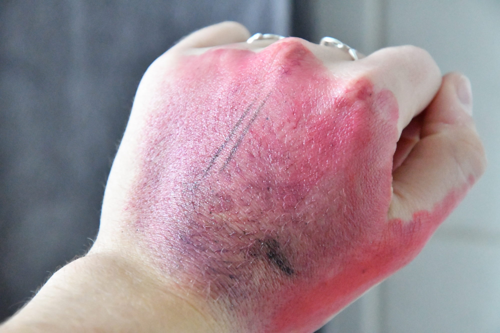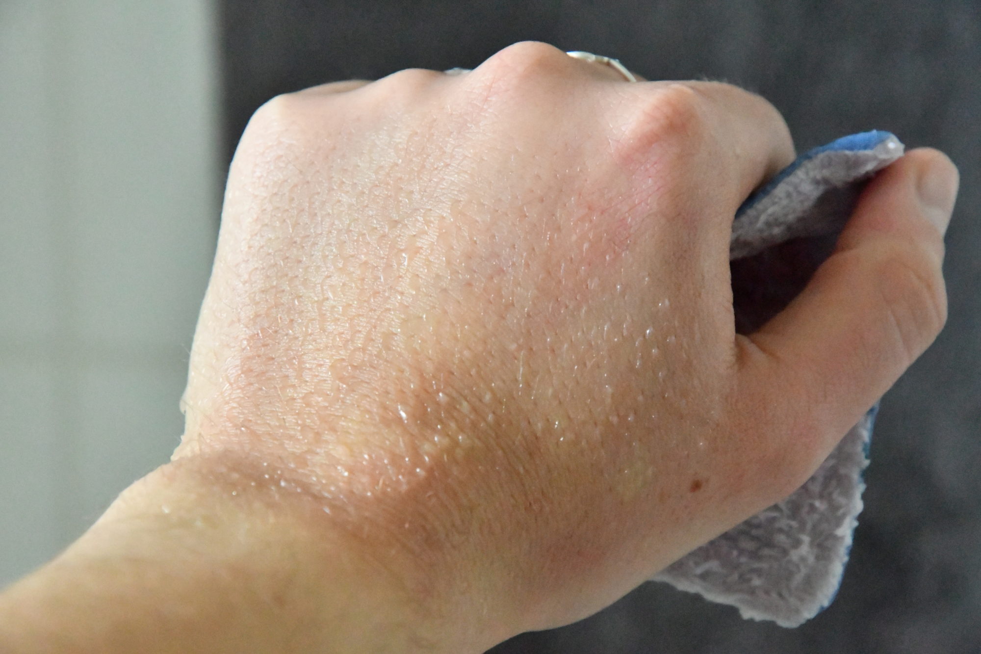 Par contre sachez que le petit galet se « salit » rapidement, dans le sens que si vous le frottez sur votre visage directement comme je fais moi (ici je l’ai fait direct contre ma main) vous aurez du maquillage dessus. Du coup ce que je fais, c’est que je le frotte entre mes mains pour le nettoyer et voilà 🙂