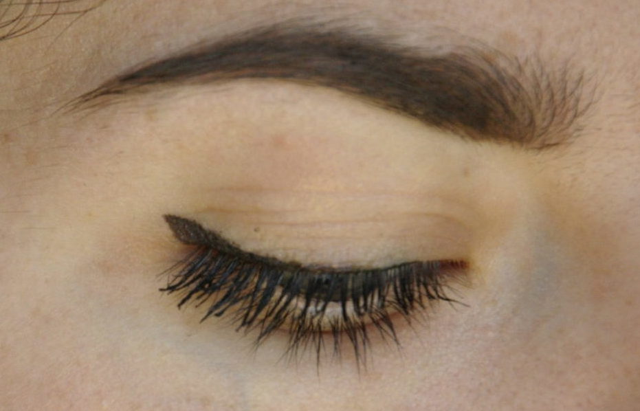 Si utilisé seul, le noir ressort peu noir, puis après 7h-8h la couleur s’estompe de plus en plus en plus et transfère légèrement sur la paupière, même avec un petit trait (je précise que j’ai les paupières grasses… et que je ne mets pas de base à paupières si je n’applique pas de fards).
