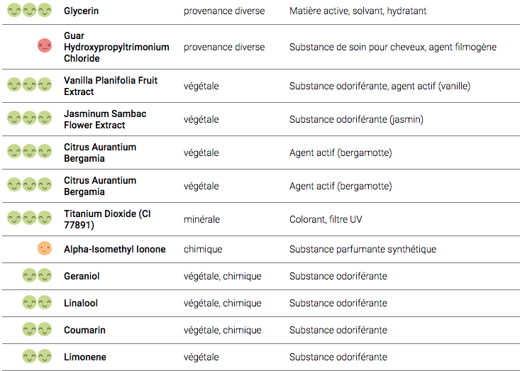La composition pourrait être un peu meilleure, disons qu’il y a quand même des sulfates et des PEG. Mais sinon quasiment tous les produits sont notés comme satisfaisants à très bien, donc ça peut aller par rapport à certains après-shampoings. Mais si vous voulez du naturel, passez votre tour.