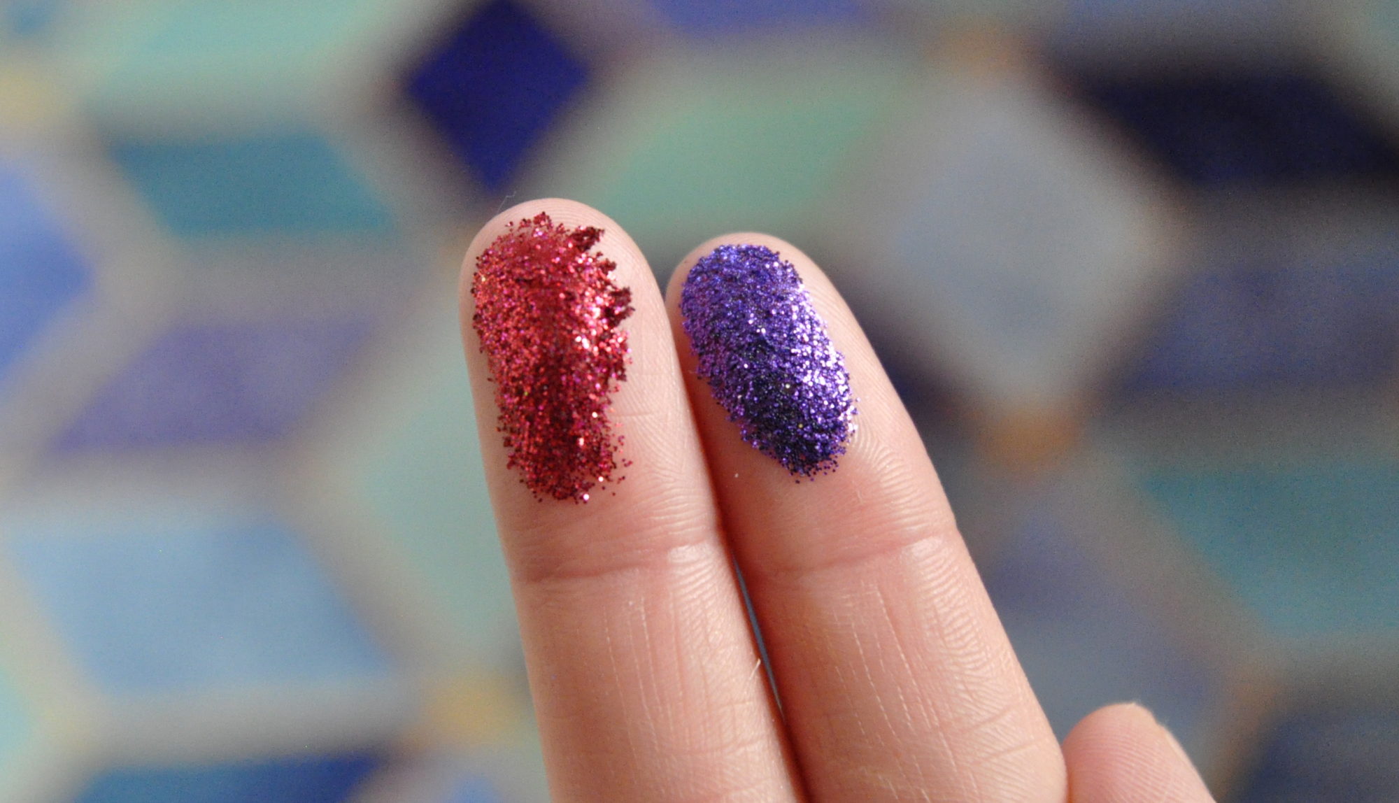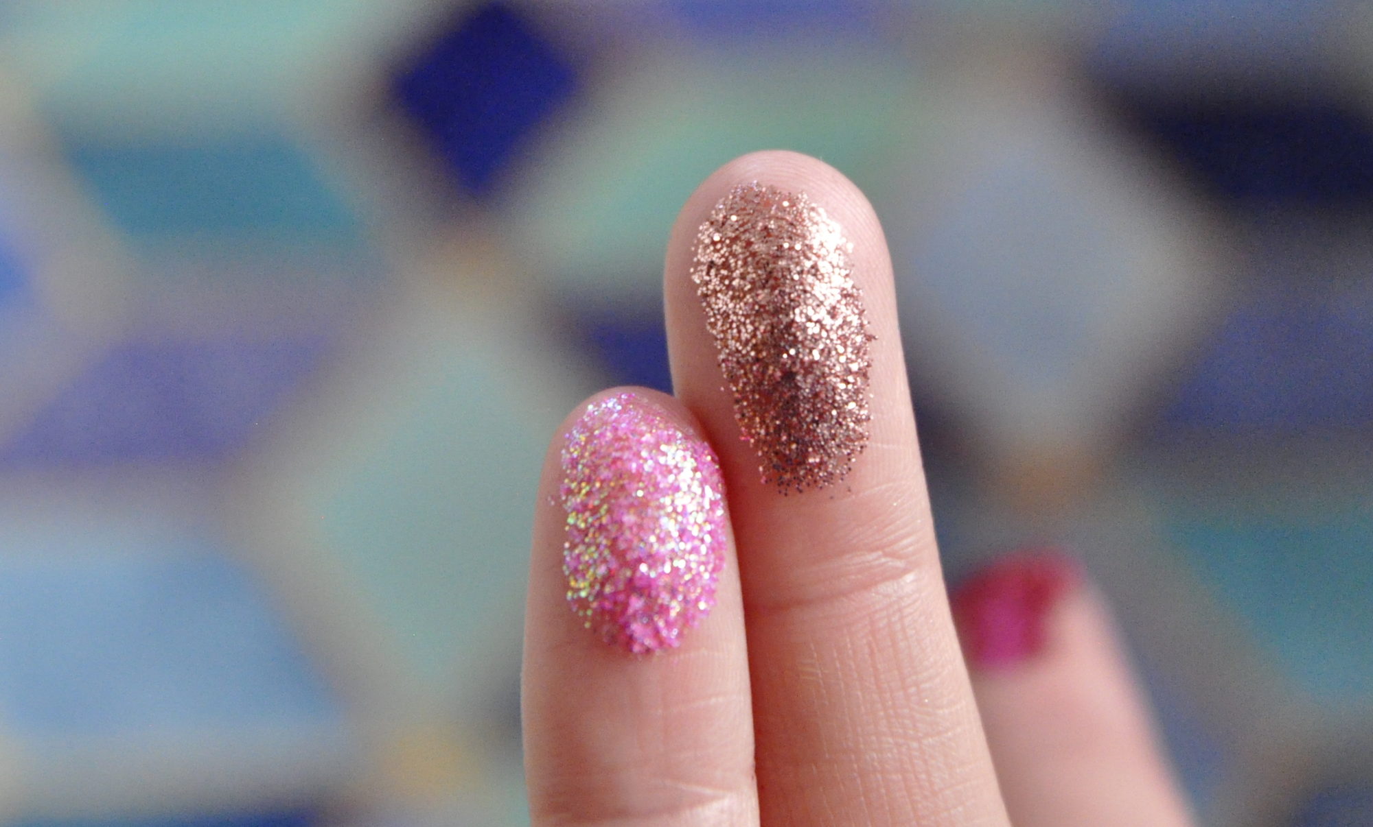 Avec les doigts : je vous le déconseille, vous allez en avoir partout, surtout si vous utilisez plusieurs paillettes différentes.