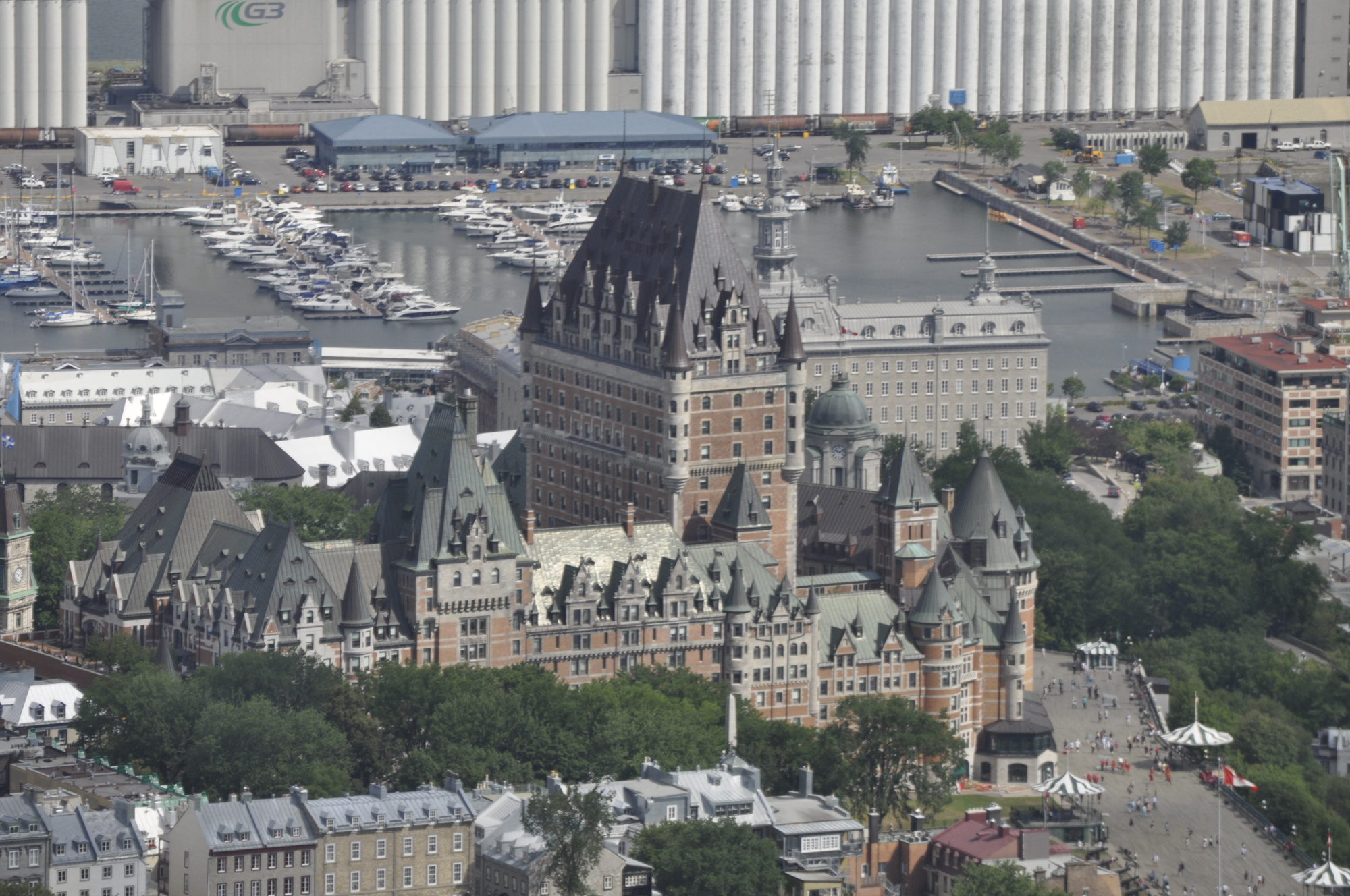 Nous avons beaucoup aimé se promener dans les environs du Château, c’est très joli à voir et on a une belle vue sur le Vieux Québec et sur le fleuve. Il serait apparemment possible de se restaurer dans le Château (il a été rénové en hôtel), mais nous n’étions pas au courant sur le moment.