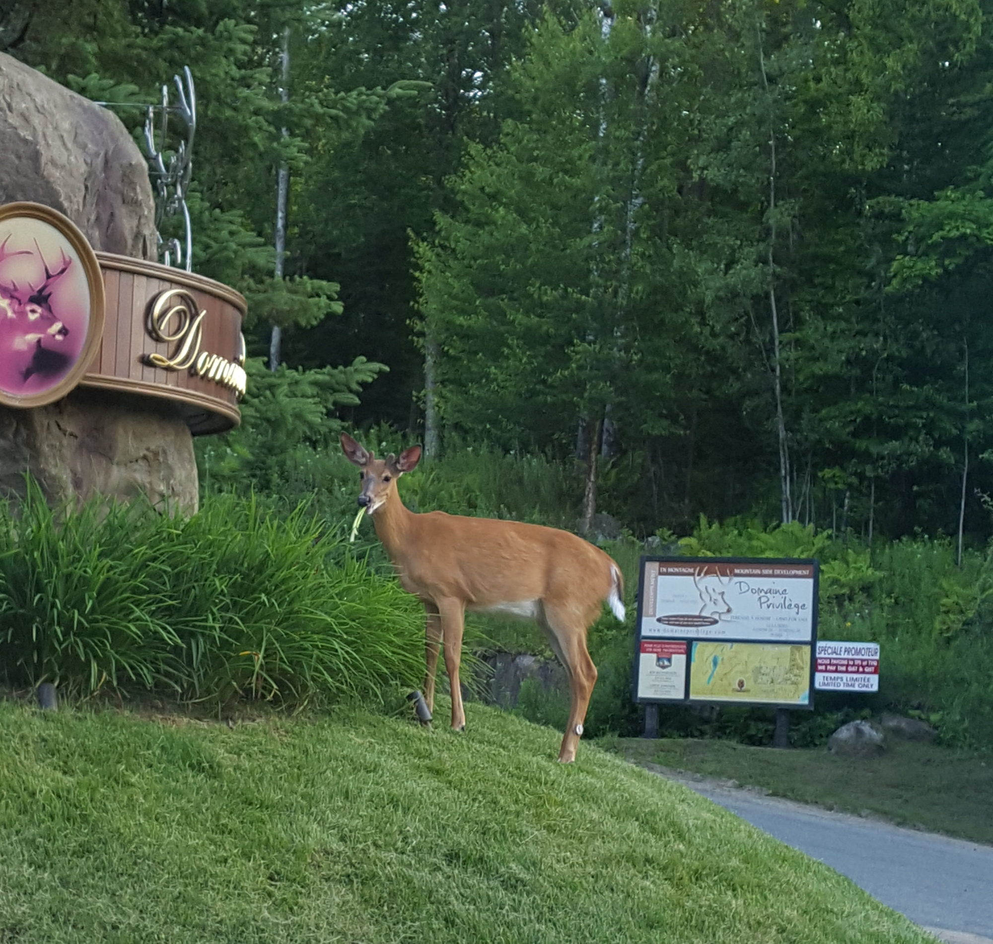 En plus nous avons vu beaucoup d’animaux en liberté en si peu de jours, c’était incroyable ! 😀 Des biches, des cerfs, des chippendales (vous voyez, ce genre de minis-écureuils comme Tic et Tac !), une marmotte, un crapaud et un colibri (impossible à photographier, car parti très vite !).