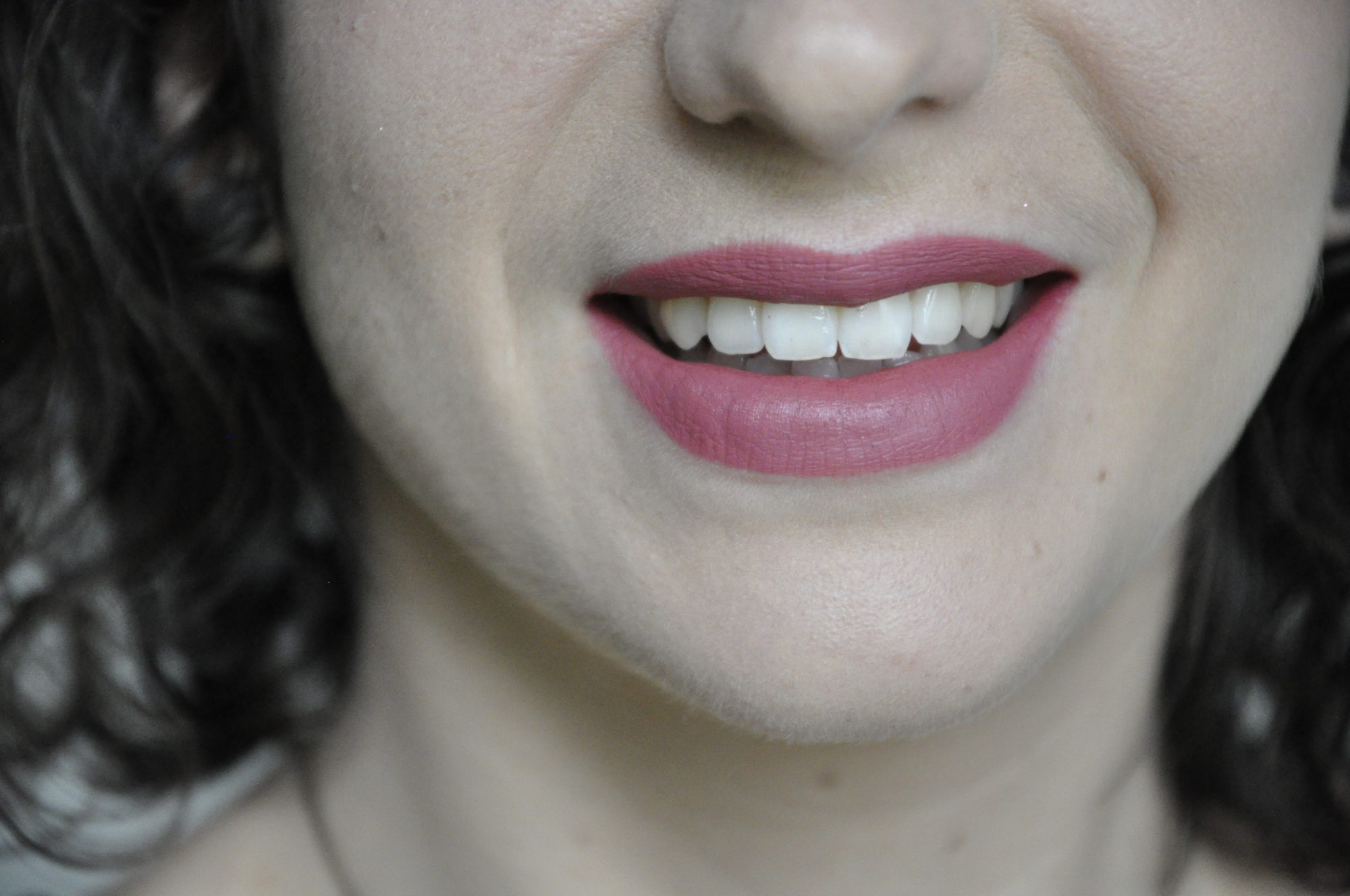 Je trouve qu’il glisse bien sur les lèvres, il s’applique vraiment facilement. Une fois j’ai même réussi à l’appliquer sans miroir ! 😛 Le rendu par contre est presque mat je trouve, car il brille un touuut petit peu. Mais il reste fidèle à son nom. Il est confortable à porter et n’assèche pas les lèvres.